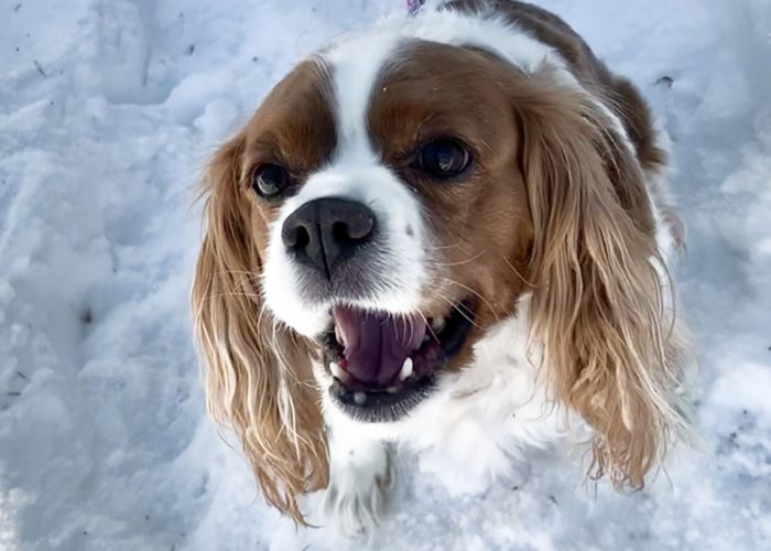 MAGGIE MAY BE 8+, BUT SHE IS FULL OF BEANS Maggie is an energetic, lovely spaniel. Maggie’s enthusiasm and looks defy her 8+ years. She has all of the features of a Cavalier King Charles, however she weighs over 30 lbs. and is large for the breed so we suspect she is a mix (perhaps…