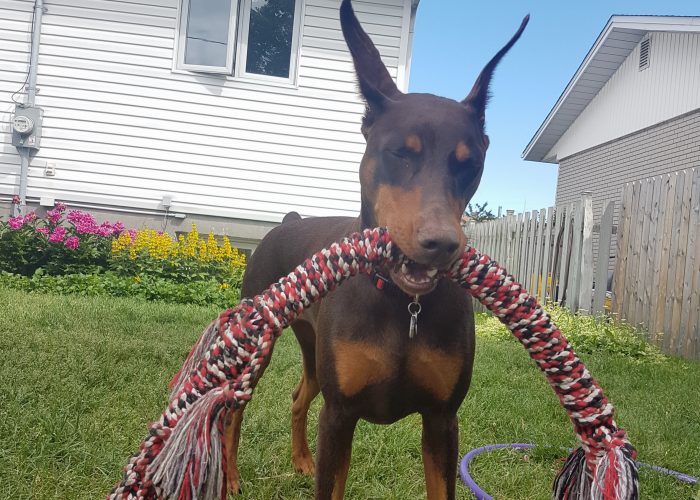 After a long and sad history for this 2 year old Dobie, LouLou found her match and is living the life. Her new family had the love and patience that she needed. No longer underweight and frantic, LouLou has found true happiness.