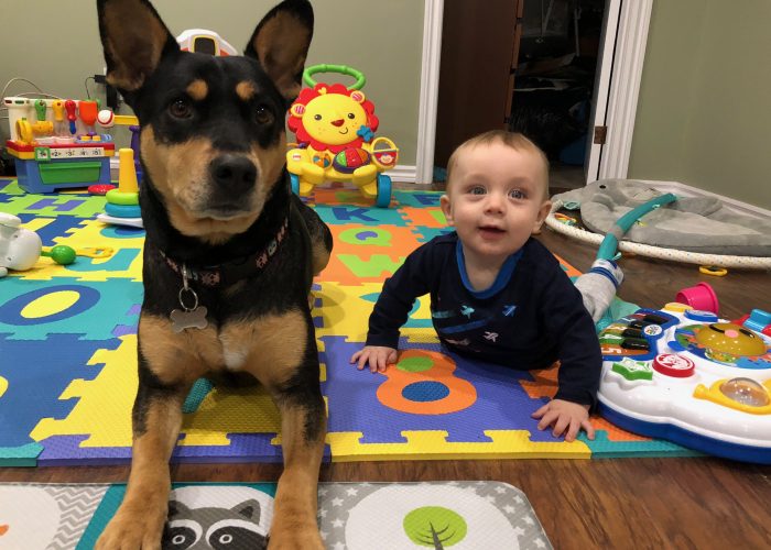 RUBY IS HAVING A WONDERFUL LIFE Ruby’s first year started out pretty awful, she was left in an apartment all day tied to the kitchen table. She was unsocialized, and unhappy. Then Cory and family came along and treated her like a princess. She goes to work with the family everyday and is now BFF’s…