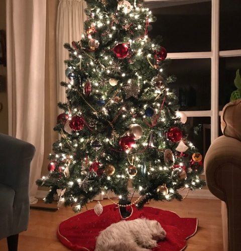 My family and I wanted to share this picture of Chloe (was Tulip), who came to live with us around the end of October. This was her yesterday, after we put up the tree! She is a gift to all of us, so being under the tree is very appropriate. Chloe is the first senior…