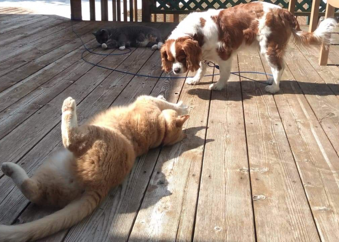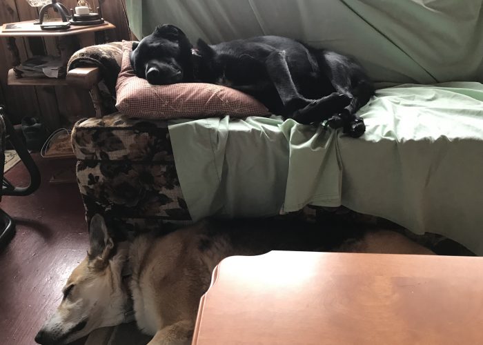 Jake on the sofa, Sandy on the floor, chilling at the lake 😁 Have a great weekend and thanks again for everything you do for these wonderful animals. –Sandy