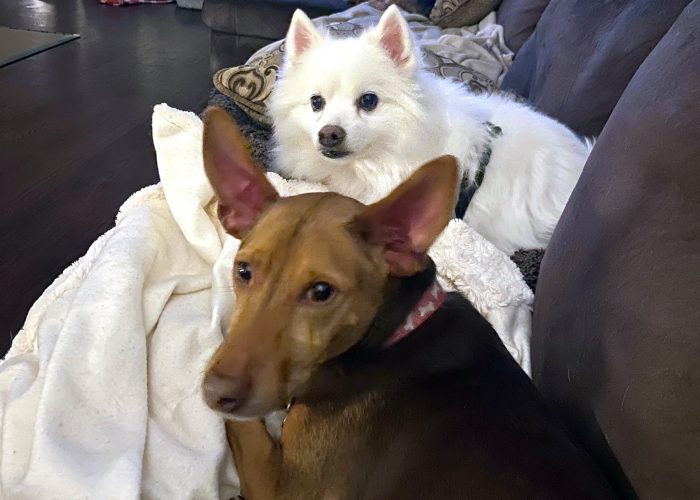 Luna is an American Eskimo and Cubanito a Daschund/Chihuahua mix. Both dogs weigh about 20 lbs, are sterilized, microchipped vaccinated and housetrained. Applicants must have a secure fenced yard!!! No children under 16. Someone must be home a good part of the day. Each one needs another confident dog in the home.