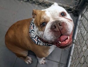 True to her breed she is uber-friendly, docile and can be willful in order to get her way. For the most part she is an affectionate and loving goofball, who loves to horse around. She walks nicely on a leash and is housetrained.