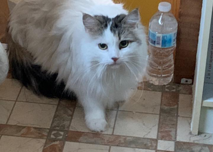 LILY, a stunningly beautiful lady is a flight risk! An indoor cat, she is very nervous and will hide any time she can! She has been spayed but will be vaccinated and vetted shortly. She gets along with the other cats in her home but, like them, she will need a family who has lots of patience and will treat this senior with TLC. Like Pepe and Pinkie, she is an INDOOR cat so needs a very secure home. Interested?