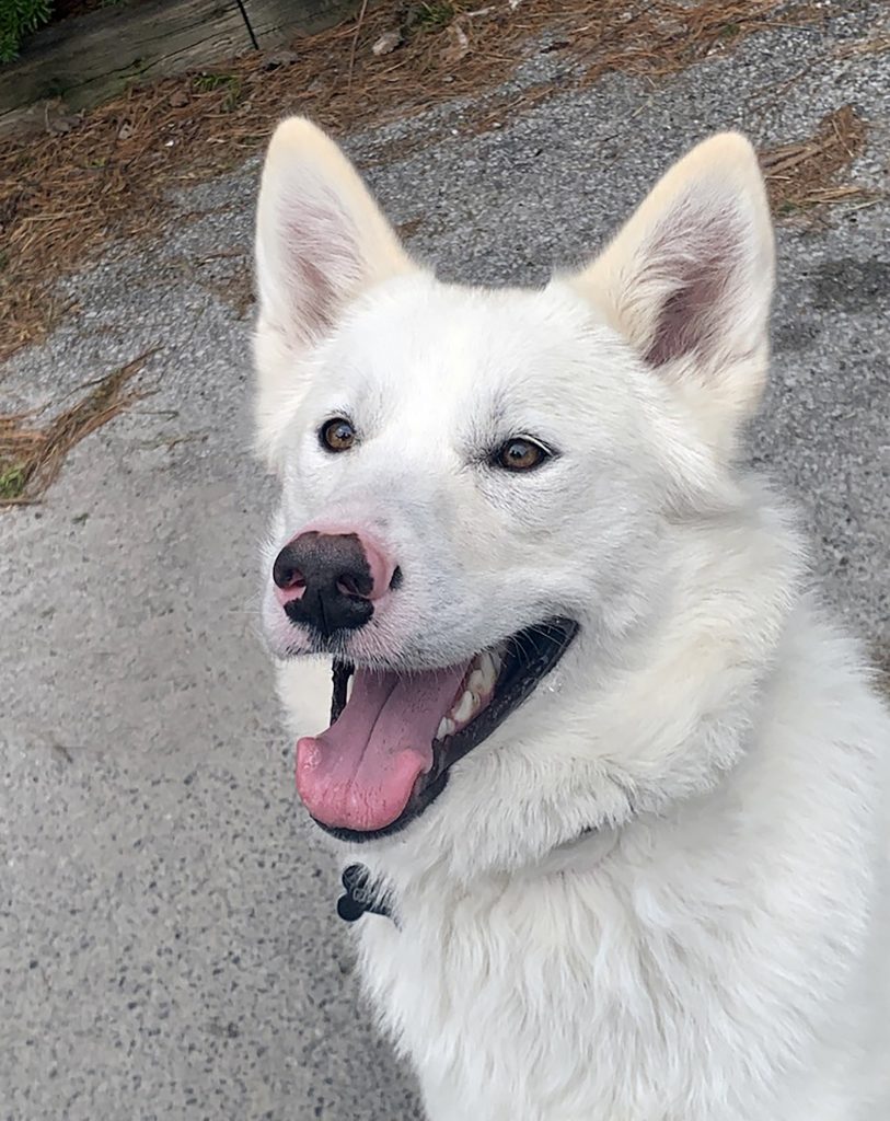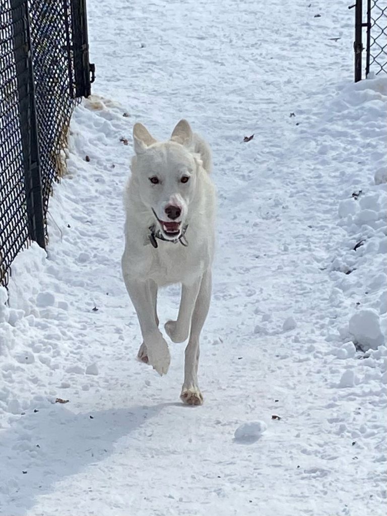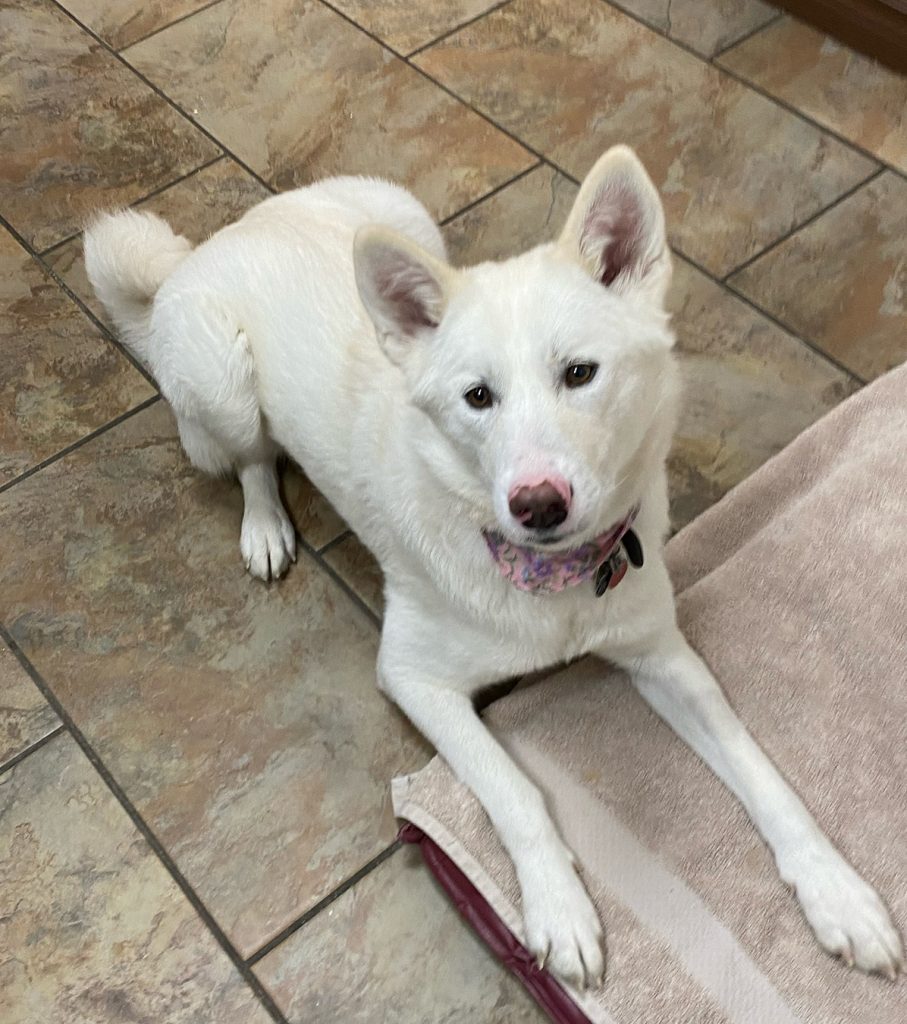 Luna, a stunning 2-year-old, all white Husky mix, was surrendered seven months ago from a broken family and has been in boarding for too long. She craves the commitment and stability of a forever family. All in all she is happy, quiet, relaxed girl.
