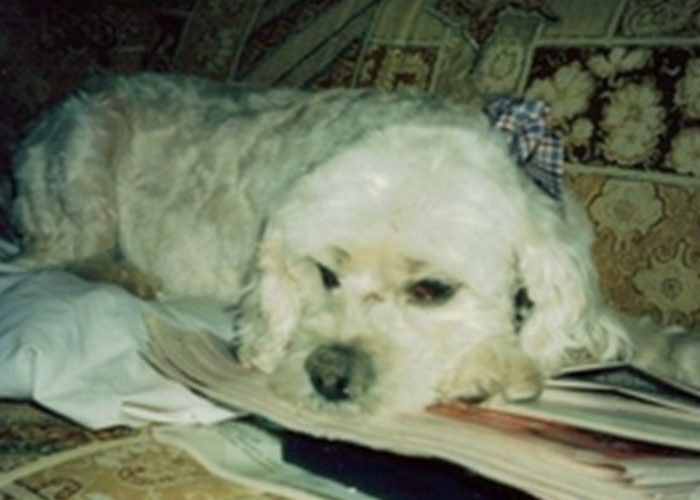 Molly was a little poodle mix when she came to us 3 years ago, a worn-out producer of puppies at a backyard puppy mill til age 8 years. She was so auto-immune that she was allergic to all dog foods as well as a bevy of environmental allergies. She was deaf from not having her ears treated years ago when they were swollen with allergy symptoms. Molly was covered in age warts. She was old and worn out before her time.
