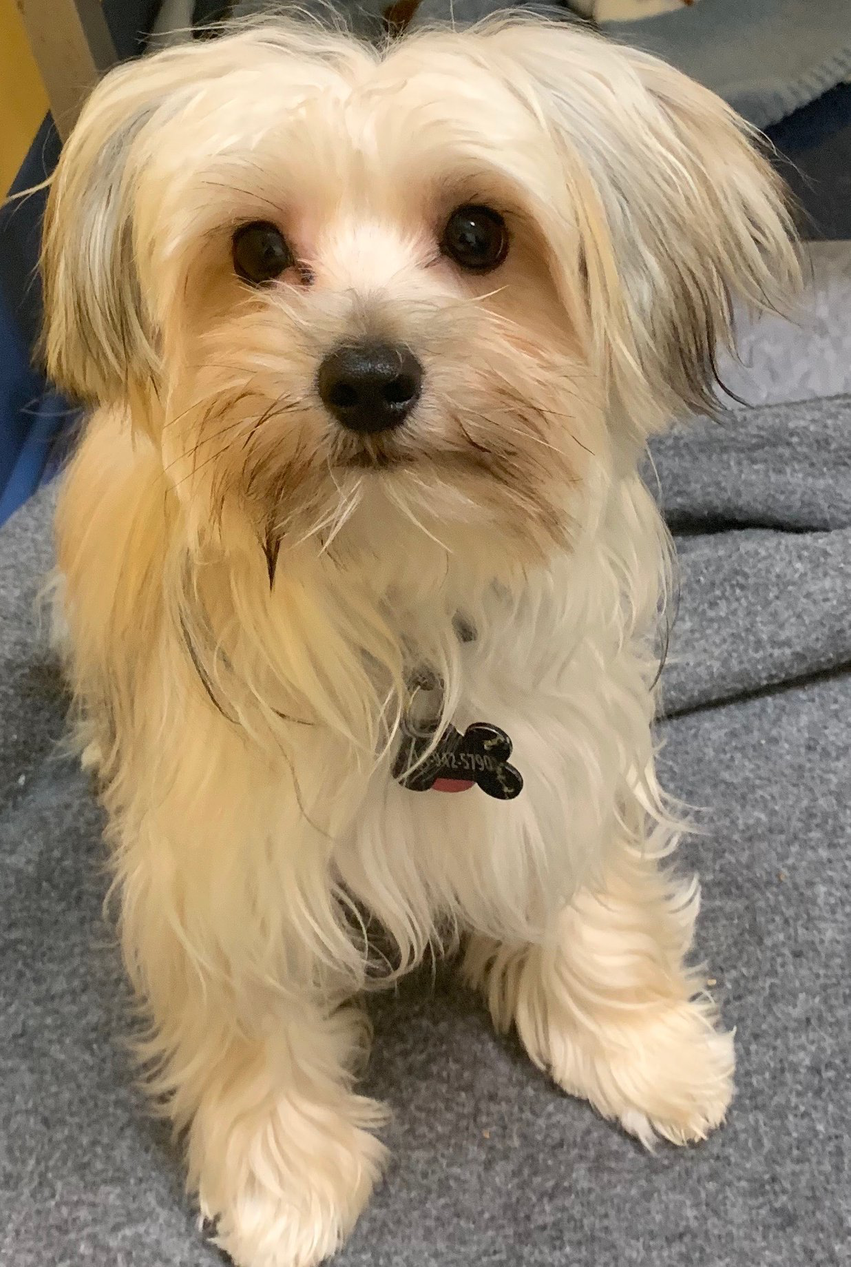Robin, a Yorkie mixed with a Powder Puff is just a year old and small at under 8 lbs. His long silky coats is easy to groom.
