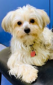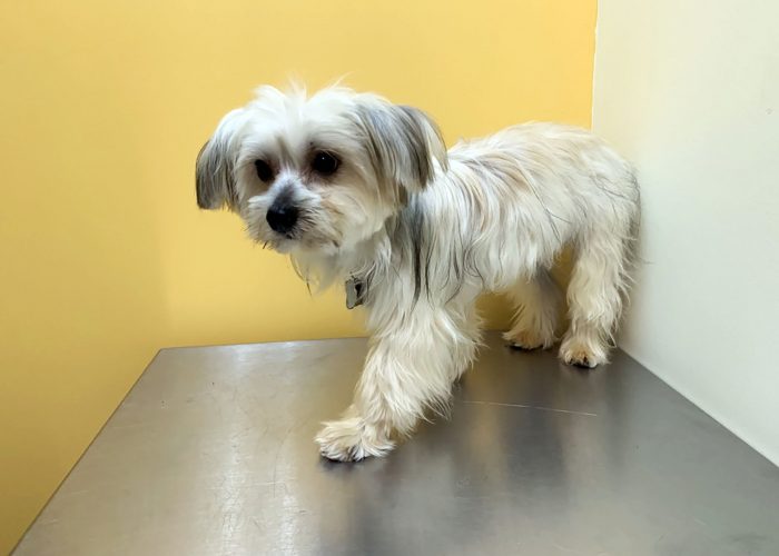 Robin is approximately 1 ½ years old and weighs 6 lbs. A little older than most of the pack of 13, seized from a backyard breeder, we suspect that he was the dad to a few of the others. Robin is a Yorkie mix (probably with a Powder Puff), and as a result, his long silky coat doesn’t mat and he is easy to groom.