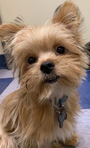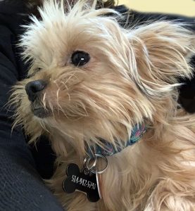 This 6-month-old Yorkie is 6 ½ lbs. of cuteness. Shy at first, she is getting better and better every day in her foster home. She loves her two foster siblings and is even settling in nicely with the cats. Having lived outdoors in the country with the pack of 13, she was deprived of socialization with humans. More importantly deprived of stimulation, many became chewers—of wood and plants and garbage… Tia adores her new toys especially her chewy toys which she hides under cushions or furniture and pulls out when the mood strikes her.