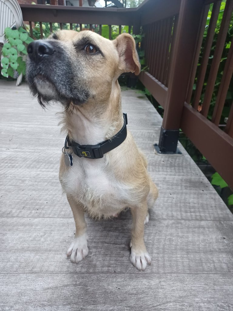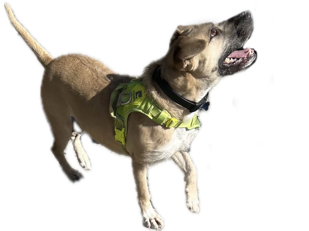 Her foster mom has spent a lot of time preparing Topaz for adoption as she was given zero attention in her prior life and was used only for breeding. With enrichment (toys and feeders) and positive reinforcement she has been a quick learner and has made enormous strides in her ability to chill and learn boundaries. Her new humans should have dog experience and be able to assert a calm leadership, and continue the ongoing training. Her leash-walking is less than perfect; she reacts to dogs and can pull. It is still not determined if it is to say howdy or, “I just don’t like your vibe”. Hence her dog-dog interaction has been limited. Her foster mom is working hard on this.