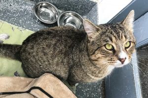 Taken in by a caring family during the ice cold spell because they feared he would freeze to death, he is now a Gerdy guy who has been neutered and vaccinated and found to be very healthy. He tested positive for FIV. His new family will keep him as an indoor cat and show him the love he deserves.